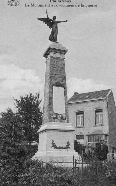 Localisation de ce monument: Hameau de Strivay, au croisement de la rue de la Grosse Pierre et de la Voie de Liège. Coordonnées GPS: +50° 32' 30.00", +5° 31' 49.49". Inscription figurant sur le monument Face avant "1914 - 1918 1940 - 1945 À SES HÉROS ET SES MARTYRS LA COMMUNE DE PLAINEVAUX" Côté droit "LES COMBATTANTS [Trente noms, classés par ordre alphabétique]" Côté gauche "LES PRISONNIERS CIVILS [Cinq noms, dont quatre sont classés par ordre alphabétique après la mention du nom du bourgmestre]" Voir les noms gravés sur ce monument |