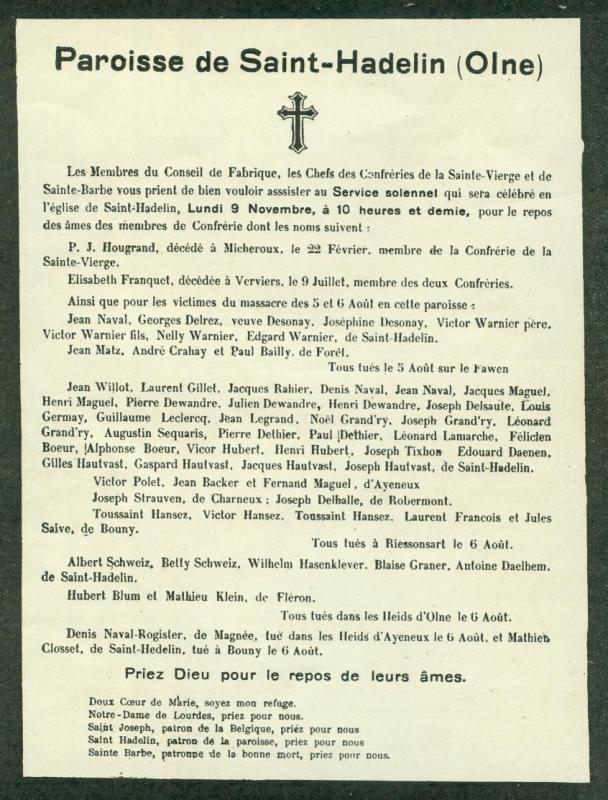 en mémoire de 8 victimes du massacre d'août 1914