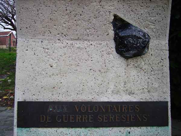 Localisation de ce monument: Square du huit mai (dans le quartier du Val Saint Lambert). Coordonnées GPS: +50° 35' 48.00", +5° 29' 19.86". Inscription figurant sur le monument "AUX VOLONTAIRES DE GUERRE SERÉSIENS" Ce monument ne comporte pas de noms |
