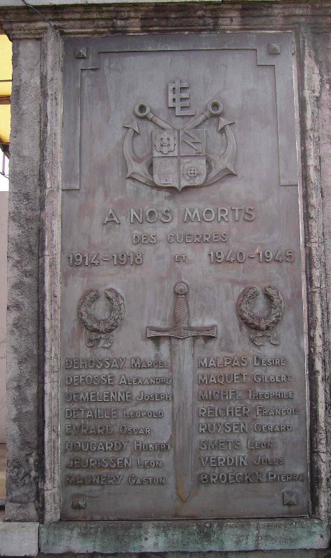 Localisation de ce monument: Rue Ferrer, sur un morceau de mur, seul vestige d'anciens bâtiments de l'entreprise. Coordonnées GPS: +50°36'29.00", +5°30'13.54". Inscription figurant sur le monument " À NOS MORTS DES GUERRES 1914-1918 ET 1940-1945 [Seize noms classés par ordre alphabétique avec une exception]" Voir les noms mentionnés sur cette plaque |