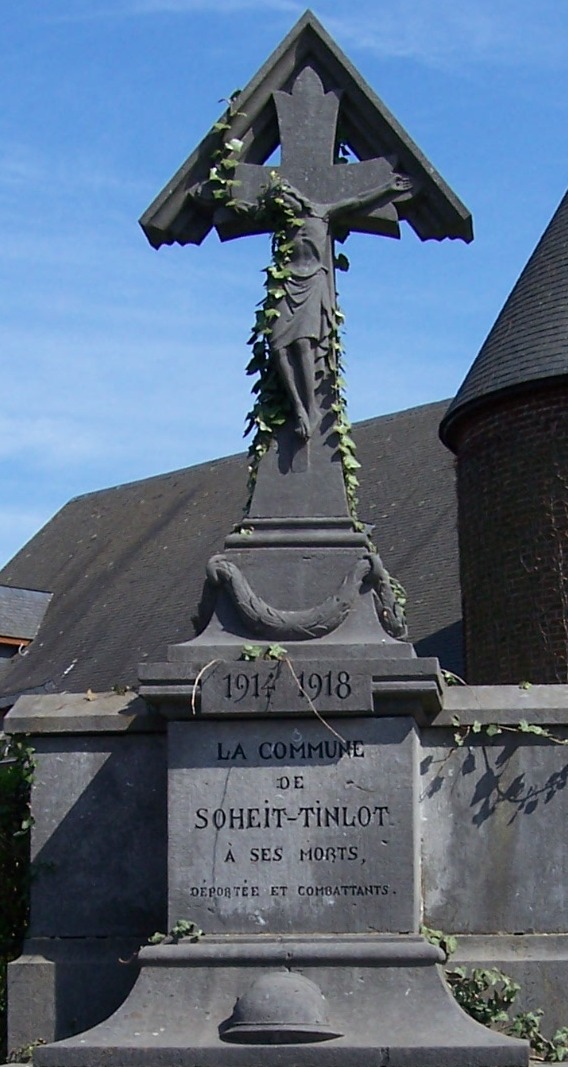 Localisation de ce monument: Carrefour rue du Centre et rue du Montys. Coordonnées GPS: +50°28'40", +5°22'42". Inscription figurant sur le monument "1914 1918 LA COMMUNE DE SOHEIT-TINLOT À SES MORTS DÉPORTÉS ET COMBATTANTS" Ce monument ne comporte pas de noms |
