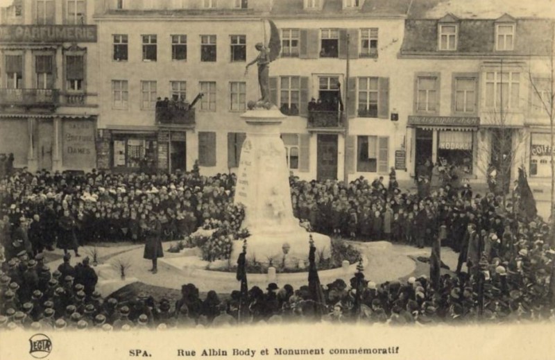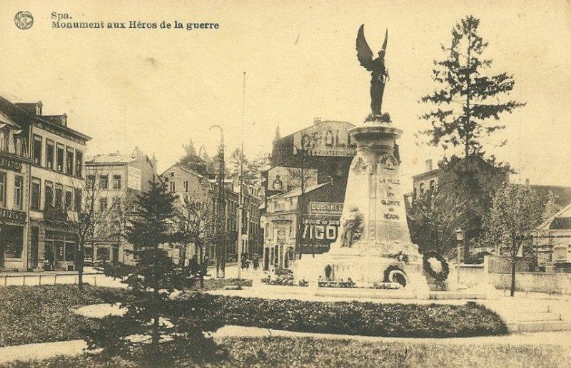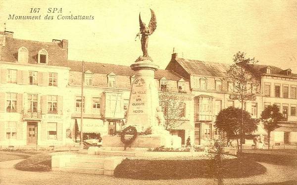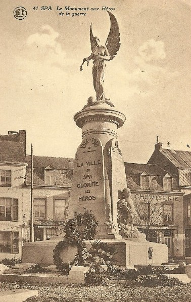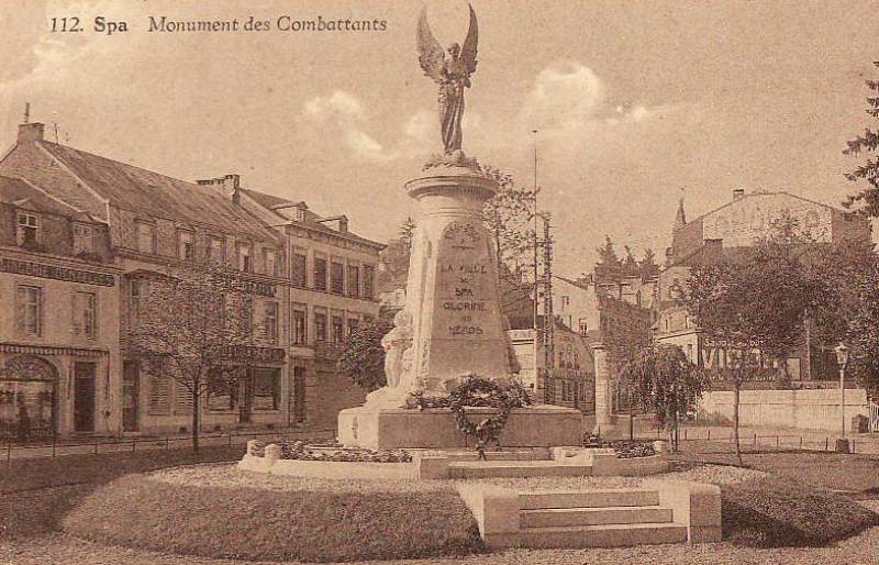 Localisation de ce monument: Place du Monument. Coordonnées GPS: 50° 29' 31" N, 5° 51' 45" E. Inscription figurant sur le monument Face avant "1914-1918 1940-1945 LA VILLE / DE / SPA GLORIFIE / SES / HÉROS" Dans le socle "[Réceptacle d’une trentaine de centimètres de large contenant une urne dotée d’une plaque de cuivre peu lisible, le tout protégé par une vitre assez ternie] CETTE URNE RENFERME DES CENDRES PROVENANT DU CRÉMATOIRE DU CAMP DE CONCENTRATION DE FLOSSENBURG ET DE SES COMMANDOS 1940 - 1945 6 MAI 1973" Plaque en pierre devant le monument "SOUVENONS-NOUS LES ÉCOLES COMMUNALES DE SPA CREPPE ET NIVEZE" Face latérale 1 "NOS HÉROS MILITAIRES 1914 - 1918 [Quarante-cinq noms, classés par ordre alphabétique] NOS VICTIMES CIVILES 1914 - 1918 [Sept noms] 1940 - 1945 [Onze noms]" Face latérale 2 "NOS HÉROS MILITAIRES 1940 - 1945 [Trente-trois noms, classés par ordre alphabétique]" Face latérale 3 "NOS RÉSISTANTS 1940 - 1945 [Dix-neuf noms] CORÉE 1951 [Un nom] DIEN-BIEN-PHU 1954 [Un nom]" Voir les noms mentionnés sur ce monument |