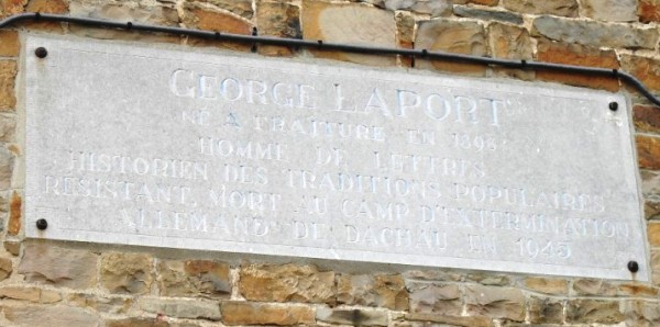 Localisation de ce monument: École communale, Rue A Vi Tiyou, n° 10. Coordonnées GPS: +50°29'12.78", +5°36'12.26". Inscription figurant sur le monument "GEORGE LAPORT NÉ À FRAITURE EN 1898 HOMME DE LETTRES HISTORIEN DES TRADITIONS POPULAIRES RÉSISTANT MORT AU CAMP D'EXTERMINATION ALLEMAND DE DACHAU EN 1945" Plus d'informations concernant cette personne |