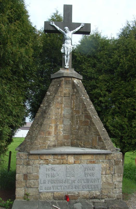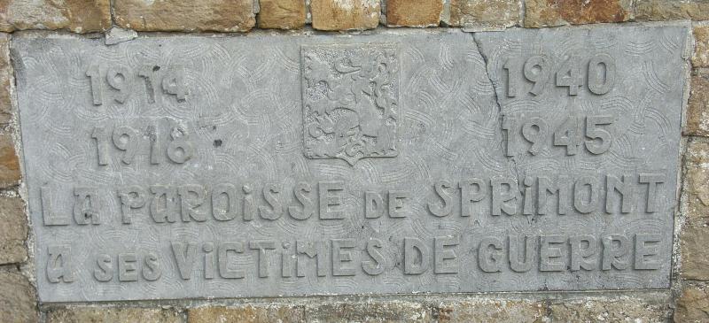 Localisation de ce monument: Au carrefour formé par la Rue du Tige, la Rue Armand Binet, la Rue Jean Schinler et Grand Route (N 30). Coordonnées GPS: +50°29'44.15", +5°40'09.63" Inscription figurant sur le monument "1914 1940 1918 1945 LA PAROISSE DE SPRIMONT À SES VICTIMES DE GUERRE" Ce monument ne comporte pas de noms |