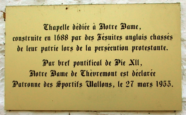 Localisation de ces plaques: Chapelle de Chèvremont, rue de Chèvremont. Coordonnées GPS: +50°35'50.35", +5°38'19.57". Inscription figurant sur le monument Ex-voto "MERCI À N.D. DE CHÈVREMONT POUR LE RETOUR DE MON MARI 23.1.1944" Plaque commémorative "LE XVII MAI UNE TORPILLE D'AVION N'A PAS PRÉVALU CONTRE ELLE" Ces plaques ne comportent pas de noms |
