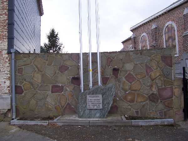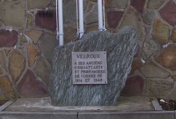Localisation de ce monument: Devant l'entrée de l'église et du cimetière, rue du Village. Coordonnées GPS: 50° 38' 39.00" N, 5° 25' 30.16 E. Inscription figurant sur le monument "VELROUX À SES ANCIENS COMBATTANTS ET PRISONNIERS DE GUERRE DE 1914 ET 1940" Ce monument ne comporte pas de noms |