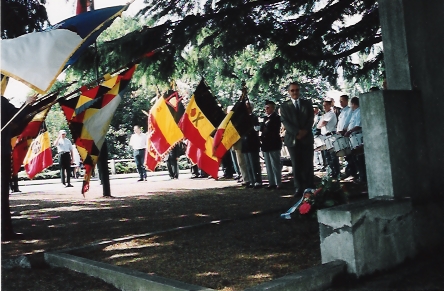 dépose une gerbe de fleurs en souvenir des combattants lors de la