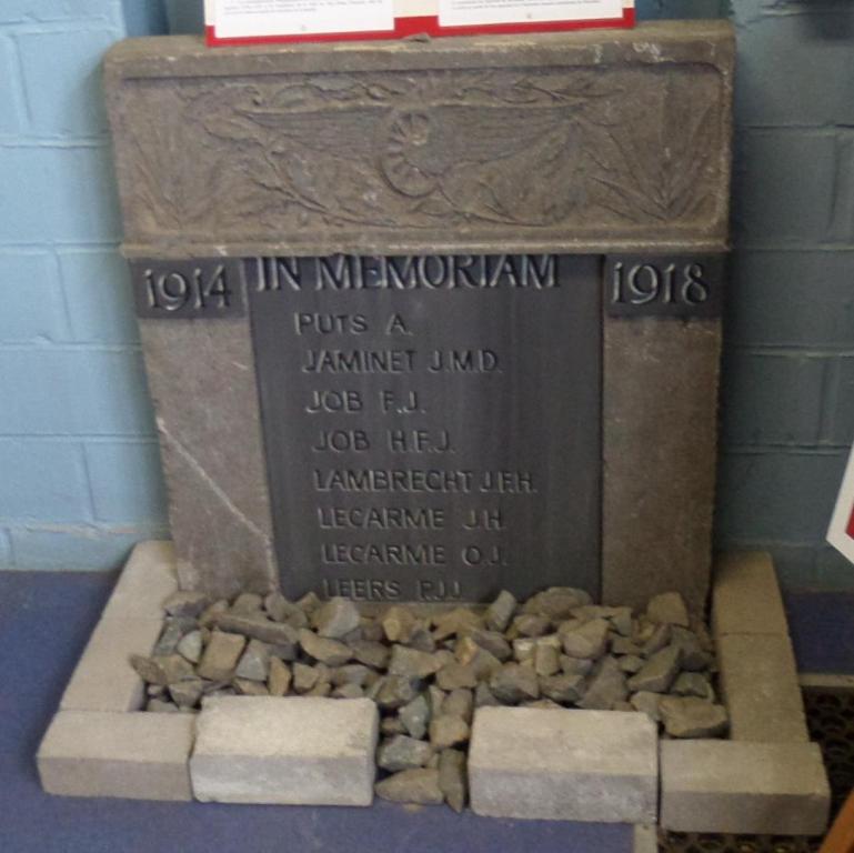 Localisation de ce monument: À l'angle de l'Avenue au Pont et de la Rue Maréchal Foch, sur la petite esplanade devant la gare, en bordure de Meuse. Coordonnées GPS: +50°44'16.12", +5°41'31.93" Inscriptions figurant sur le monument "IN MEMORIAM 1914 1918 [Huit noms, classés par ordre alphabétique] 1940 1945 [Cinq noms, classés par ordre alphabétique]" Informations complémentaires: Ce monument reprend les noms qui se trouvaient sur le premier monument, en pierre, que le Club des Chercheurs et Correspondants Cheminots (C.C.C.C.) a récupéré et « restauré », et qui, lui, se trouvait à l’origine au centre d’un parterre situé entre les voies et l’ancienne gare voyageurs, beaucoup plus au nord de l’actuelle, au pied du pont « Gaber » construit à l’initiative des Allemands durant la première Guerre. La stèle originelle n’a pas pu être récupérée dans son entièreté et il manque la partie inférieure, cassée vraisemblablement lors de son enlèvement. Elle contenait les noms des victimes de la seconde Guerre mondiale. La partie « sauvée » comporte les noms des 8 cheminots morts entre 1914 et 1918. L’ensemble des noms fut repris sur la nouvelle stèle, placée dans les années 1980, devant la gare voyageurs actuelle (Source: Marylène Zecchinon, conservatrice-adjointe du musée régional de Visé et secrétaire du Club des Chercheurs et Correspondants Cheminots de Visé) Voir les noms mentionnés sur ce monument |
