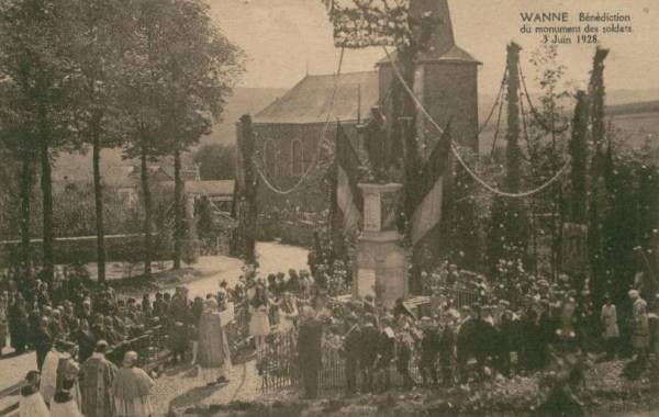 Localisation de ce monument: Carrefour des rues Aisomont, Wanneranval, Wanne et Faix du Diable. Coordonnées GPS: +50°21'18.87", +5°55'13.70". Inscription figurant sur le monument "VAINCRE OU MOURIR 1914 - 1918 HONNEUR À NOS HÉROS [Cinq noms] DES SUITES DE LA GUERRE [Quatre noms] 1940 - 1945 [Trois noms] DES SUITES DE LA GUERRE [Un nom] 1940 - 1945 MORT EN ALLEMAGNE [Un nom] DISPARU EN ALLEMAGNE [Un nom] FUSILLÉS PAR LES ALLEMANDS [Huit noms]" "POUR DIEU ET LA PATRIE" "ECCE JESU CHRISTO REGI WANNE PUSSIME DICATUR" Voir les noms gravés sur ce monument |