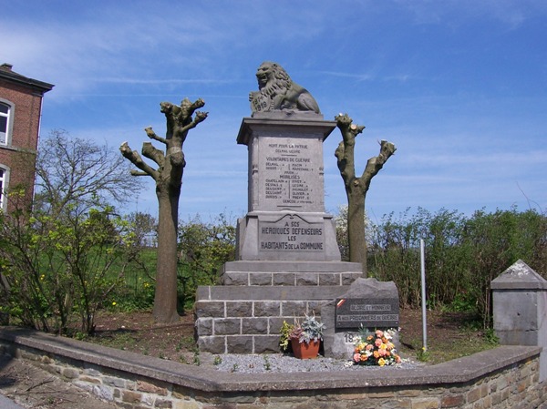 Localisation de ce monument: Carrefour Grand'Route et rue de l'Église. Coordonnées GPS: 50° 26' 58" N, 5° 25' 41" E. Inscription figurant sur le monument "1914 1918 MORT POUR LA PATRIE [Un nom] VOLONTAIRES DE GUERRES [Cinq noms] MOBILISÉS [Onze noms] À SES HÉROÏQUES DÉFENSEURS LES HABITANTS DE LA COMMUNE GLOIRE ET HONNEUR À NOS PRISONNIERS DE GUERRE 1940 - 1945" Voir les noms mentionnés sur ce monument |