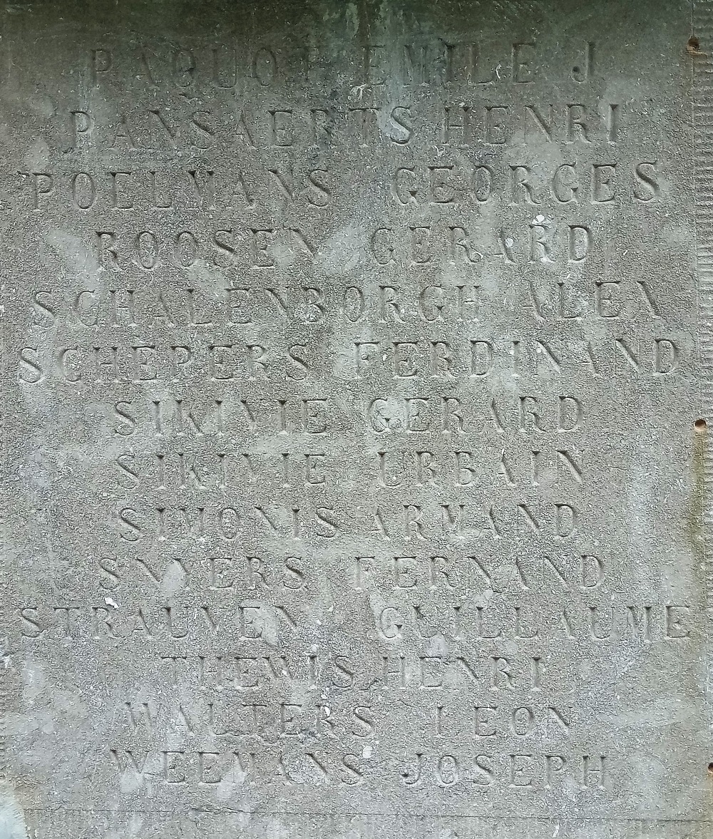 Ligging: Kruising Houtstraat en Bloemenstraat. GPS-coördinaten: +50°44'05.87", +5°12'35.06" Opschriften Voorkant "AAN ONZE HELDEN GEVALLEN VOOR HET VADERLAND 1914 - 1918 GEVALLEN OP HET VELD VAN EER [Zeven namen van slachtoffers W.O. I, niet alfabetisch gerangschikt] 1940 - 1945 [Drie namen, niet alfabetisch gerangschikt]" Gedenkplaat "UIT SYMPATHIE AAN DE GESNEUVELDEN VAN OORLOG 14/18 40/45 AFDELING JEUK GIFT JEAN BERGERS" Rechterkant "[Dertien namen, alfabetisch gerangschikt]" Linkerkant "[Dertien namen, alfabetisch gerangschikt]" Achterkant "[Veertien namen, alfabetisch gerangschikt]" Zie namen op het gedenkteken |