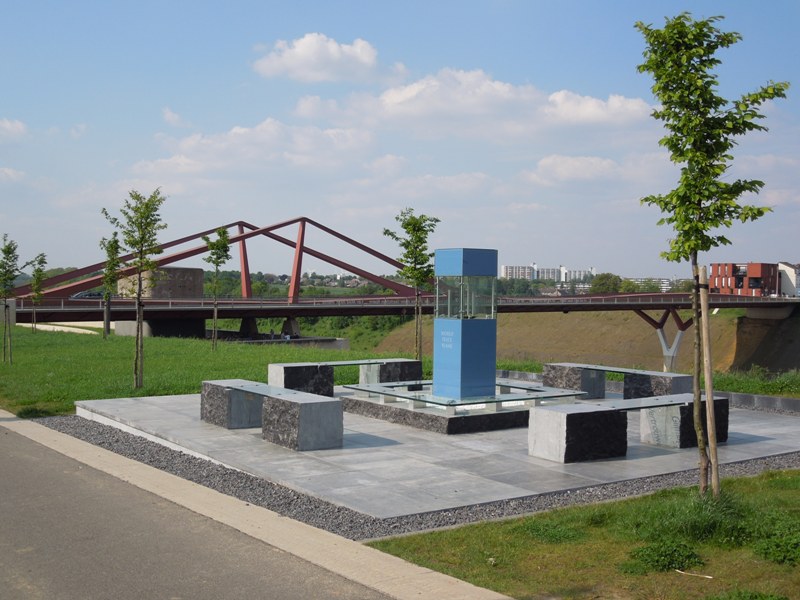 Situering: Maastrichtersteenweg, rechts voor brug over de Maas. GPS-coördinaten: +50°49'46.52", +5°38'30.42" Opschrift op het gedenksteen "WORLD PEACE FLAME" Inhuldiging: Zondag 29 april 2012. Meer informatie Meer over de Wereldvredesvlam te Vroenhoven: "Wereldvredesvlam Riemst" Meer over de Wereldvredesvlam initiatief: "World Peace Flame" Er staan geen namen gebeiteld op het gedenkteken |