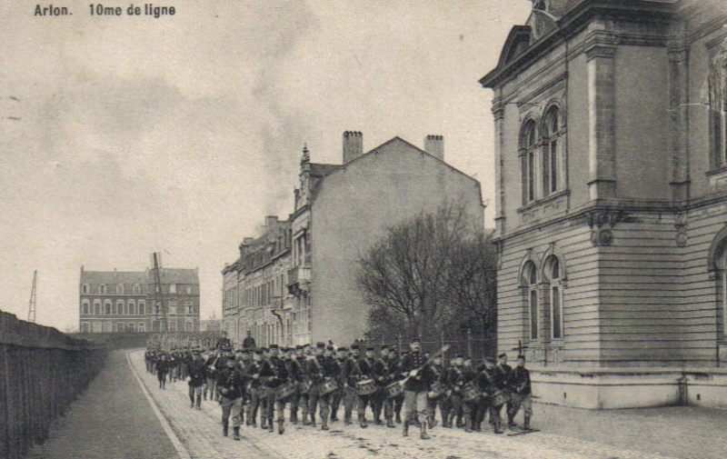 Le 10ème régiment de Ligne dans l'actuelle avenue de la Gare