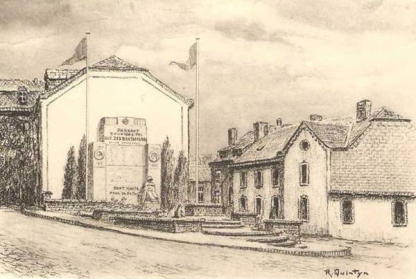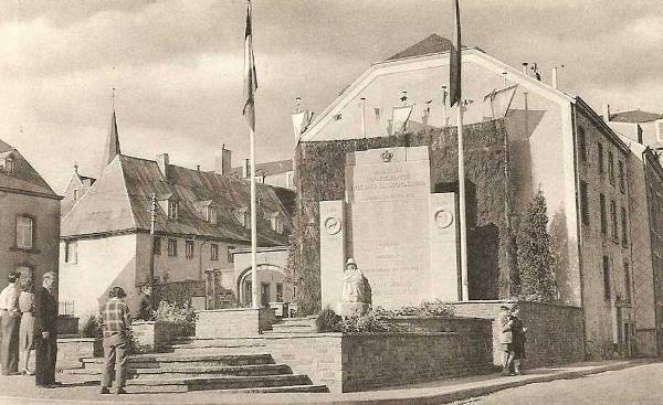 Monument provisoire érigé Place Saint-Pierre après destruction du