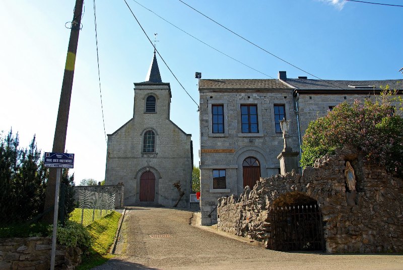 Localisation de ce monument: Devant l'ancien presbytère, Rue des Métiers. Localisation du cimetière: Rue des Métiers, autour de l'église Notre-Dame de la Visitation. Coordonnées GPS du monument: +50°21'50.20", +5°26'12.81" Coordonnées GPS du cimetière: +50°21'47.81", +5°26'13.09" Inscriptions figurant sur ce monument Sur la partie supérieure de la face avant "SACRÉ CŒUR LEUR SOUTIEN DANS LE COMBAT PALANGE 1914 - 1918" Sur la partie inférieure de la face avant "À NOS VAILLANTS SOLDATS [Trois noms, avec statut, non classés par ordre alphabétique] [Sept noms, classés par ordre alphabétique]" Sur une des faces latérales "À NOS BRAVES DÉPORTÉS [Seize noms, classés par ordre alphabétique]" Par ailleurs, on trouve dans le cimetière communal les sépultures de deux soldats de 1940-1945. Leurs noms ont été ajoutés dans la base de données Voir les noms gravés sur ce monument et sur les tombes individuelles dans le cimetière |