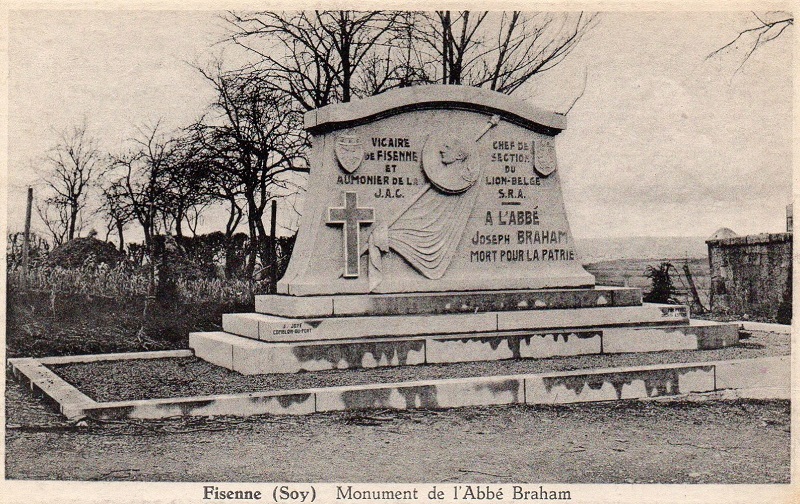 Localisation de ce monument: Devant l'église, rue du Château. Coordonnées GPS: +50°17'27.31", +5°31'54.78". Inscription figurant sur le monument "VICAIRE DE FISENNE ET AUMÔNIER DE LA U.A.C. CHEF DE SECTION DU LION-BELGE S.R.A. À L'ABBÉ JOSEPH BRAHAM MORT POUR LA PATRIE" Plus d'informations concernant cette personne |