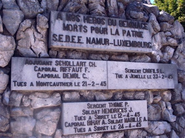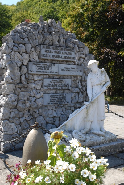 Localisation de ce monument: Rue Maréchal FOCH, en face du n° 39. Coordonnées GPS: +50°05'31.20", +5°16'41.09". Inscription figurant sur le monument "À NOS HÉROS DU DÉMINAGE MORTS POUR LA PATRIE S.E.D.E.E NAMUR - LUXEMBOURG [Douze noms, avec mention du grade ainsi que des date et lieu de décès]" Inauguration: le 7 septembre 1947. Voir les noms gravés sur ce monument |