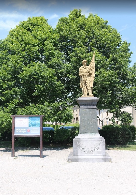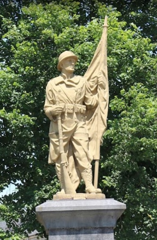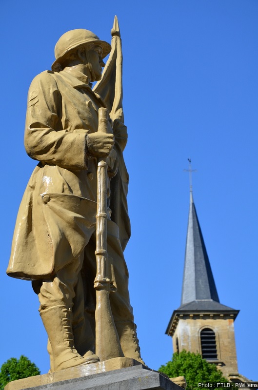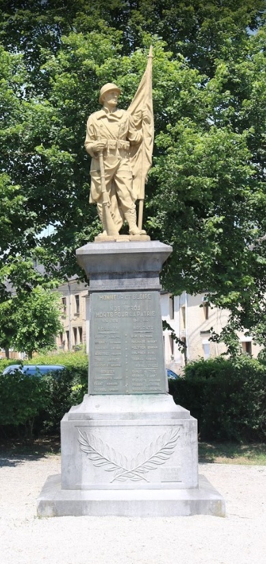 Localisation: Sur l'îlot situé entre la rue de Virton et la rue Eaubruchet. Coordonnées GPS: +49°36'15.53", +5°28'47.36" Inscriptions Face avant "HONNEUR ET GLOIRE À NOS HÉROS MORTS POUR LA PATRIE 1914 - 1918 SOLDATS [Six noms, non classés par ordre alphabétique] DÉPORTÉS [Trois noms, classés par ordre alphabétique] 1940 - 1945 SOLDATS [Cinq noms, classés par ordre alphabétique] VICTIMES CIVILES [Cinq noms, classés par ordre alphabétique]" Face latérale droite "HOMMAGE À NOS VAILLANTS COMBATTANTS ÉVÉNEMENTS DU CONGO EN 1960 [Un nom]" Face latérale gauche "SOUVENIR ÉMU À NOS BRAVES DÉPORTÉS" Face arrière "RECONNAISSANCE AUX 27 SOLDATS FRANÇAIS TOMBÉS SUR NOTRE TERRITOIRE EN AOÛT 1914" Réalisation de la statue: Fonderie J.G. RÉQUILLÉ Voir les noms mentionnés sur le monument |
