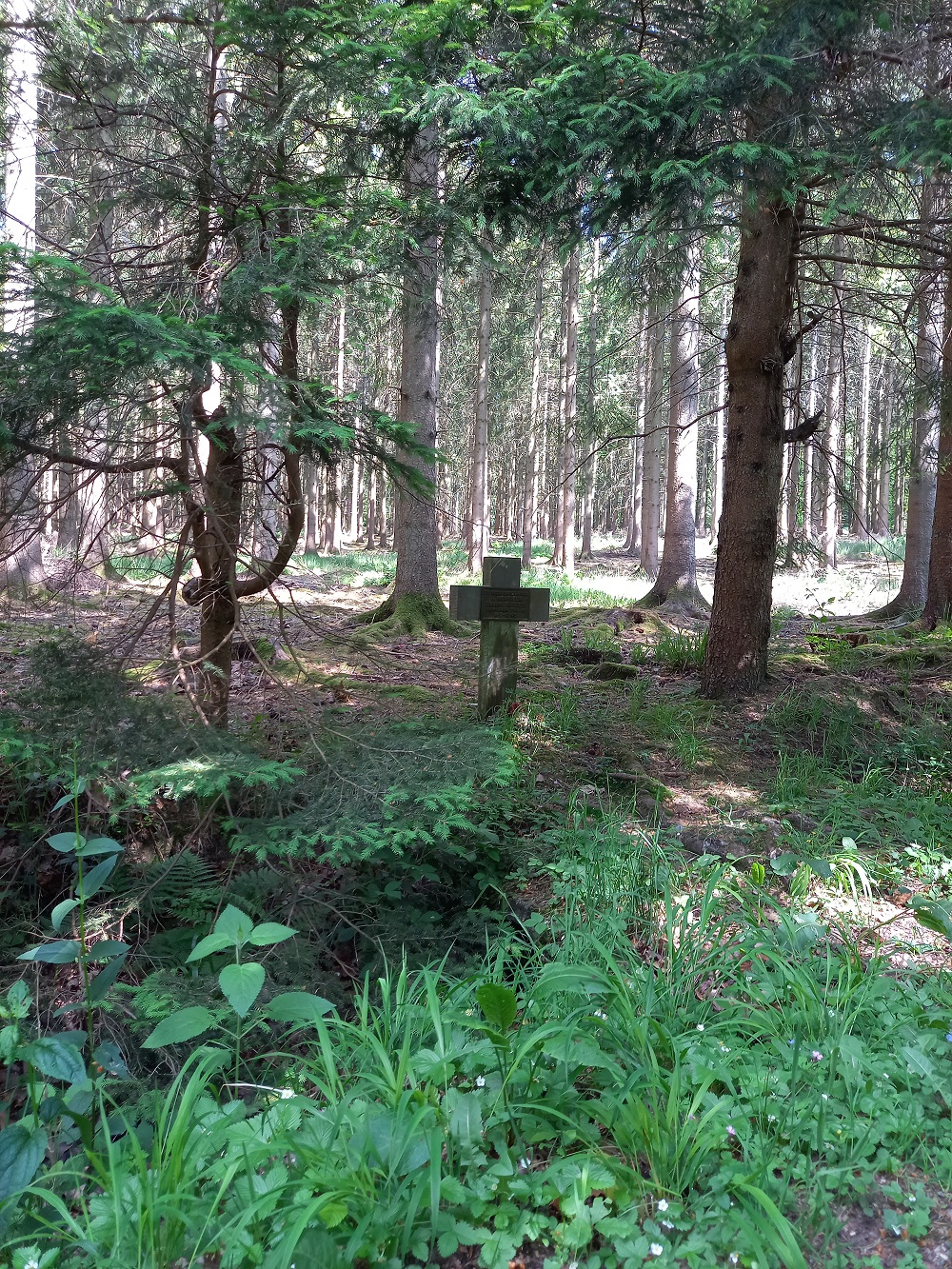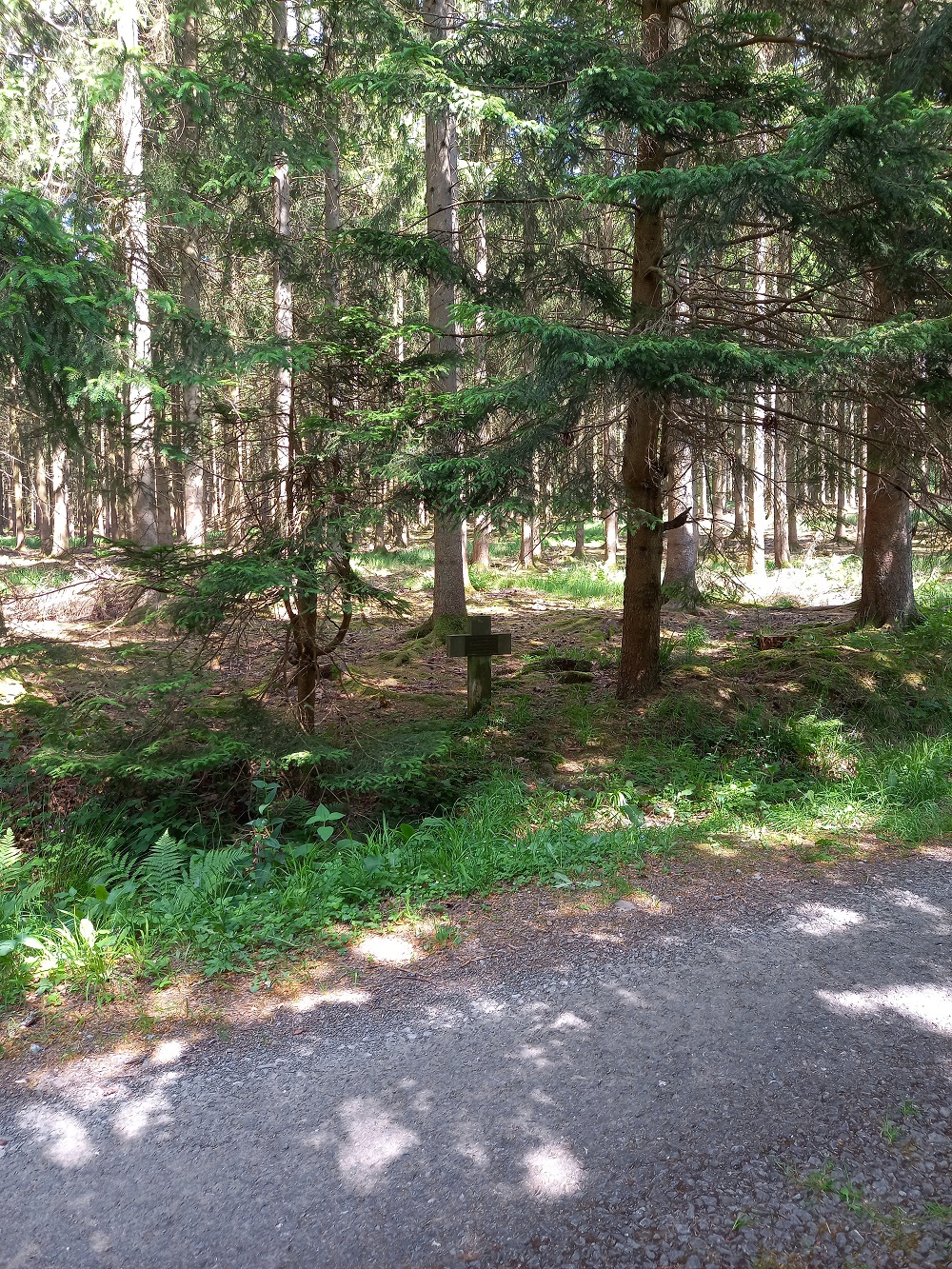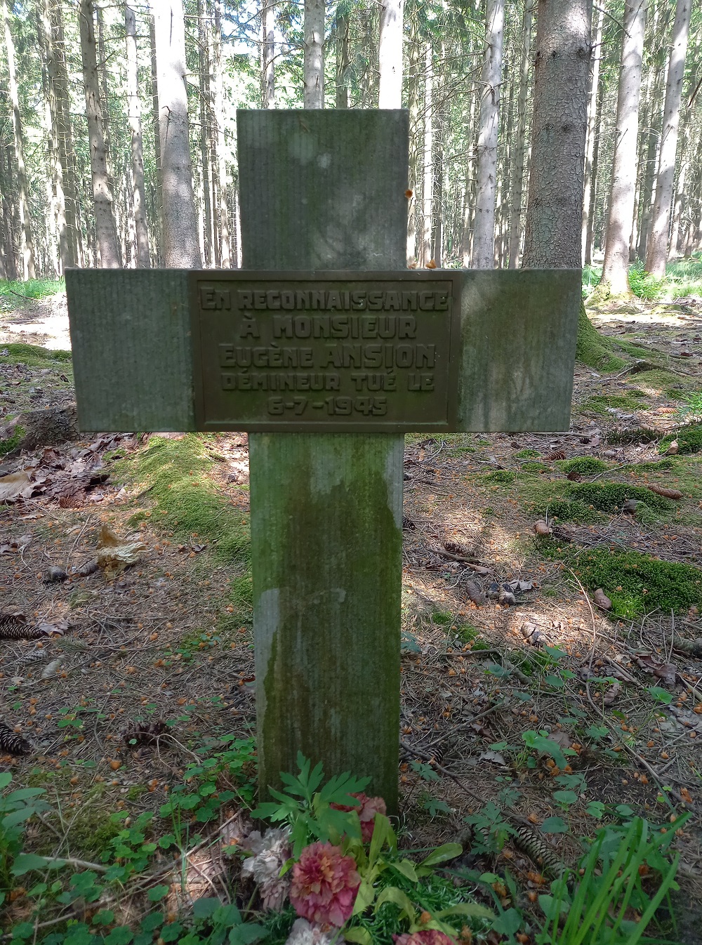 Localisation: Quitter Nassogne en direction de Champlon par la rue de Lahaut (N889). Après 1.500 mètres, prendre à droite la rue Château du bois. La croix se trouve sur votre gauche à environ 700 mètres. Il convient d'être attentif car la stèle est dissimulée par des branches d'arbre. Coordonnées GPS (approximatives): +50°07'16.7", +5°22'16.1" Inscriptions "EN RECONNAISSANCE À MONSIEUR EUGÈNE ANSION DÉMINEUR TUÉ LE 6-7-1945" Plus d'informations concernant cette personne |
