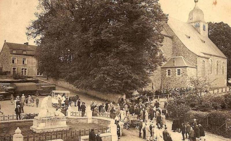 Localisation de ce monument: Place communale, à proximité immédiate de l'église et de la maison communale. Inscription figurant sur le monument Face avant "À NOS HÉROS 1914 - 1918 EN RECONNAISSANCE À NOS VICTIMES 1940 - 1945 RÉSISTANTS [Deux noms] PRISONNIERS DE GUERRE [Deux noms] COMBATTANTS [Trois noms] PRISONNIERS POLITIQUES [Trois noms]" Face latérale 1 "VICTIMES DE LA DÉPORTATION [Trois noms]" Face latérale 2 "MORTS AU CHAMP D'HONNEUR [Trois noms]" Inauguration: 5 septembre 1920. Sculpteur: Mercédès LEGRAND. Voir les noms mentionnés sur ce monument |