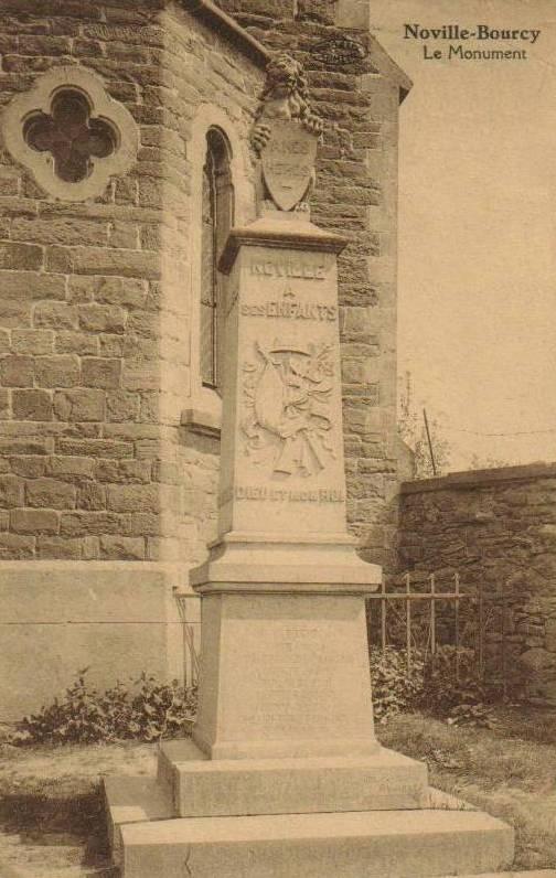 Localisation de ce monument: À droite de l'église Saint-Étienne. Coordonnées GPS: +50°03'48.00", +5°45'38.50". Inscription figurant sur ce monument Face avant "NOVILLE À SES ENFANTS VAINCRE OU MOURIR DIEU ET MON ROI MORT POUR LA PATRIE [Un nom] BLESSÉS [Huit noms]" Face latérale 1 "COMBATTANTS [Quatorze noms]" Face latérale 2 "COMBATTANTS [Quinze noms]" Voir les noms mentionnés sur ce monument |
