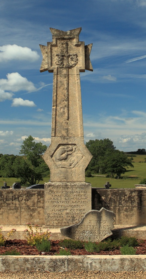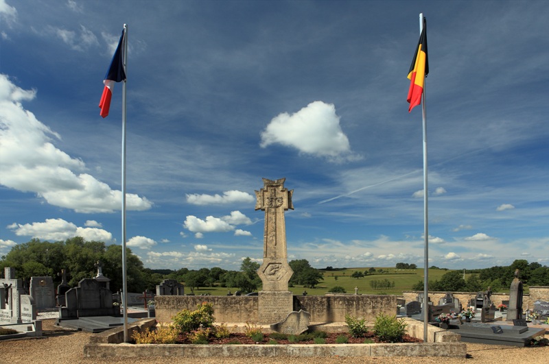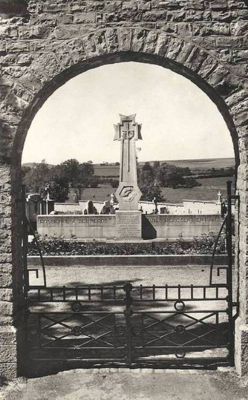Localisation de ce monument: Dans le cimetière communal, rue Camille JOSET. Coordonnées GPS: +49°42'49.44", +5°29'00.96". Inscription figurant sur ce monument Monument principal "ROSSIGNOL À SES HÉROS - QU'ILS REPOSENT EN PAIX MCMXIV - MCMXVIII [Quatre noms] MCMXL - MCMXLV [Cinq noms]" Petite stèle posée devant le monument "À NOS / CAMARADES / CHASSEURS / ARDENNAIS" Voir les noms mentionnés sur ce monument |