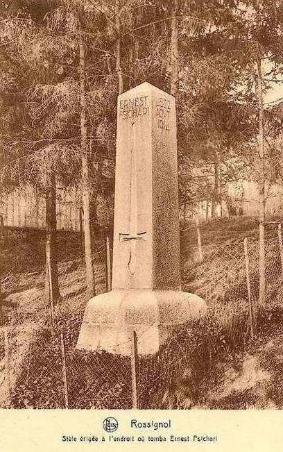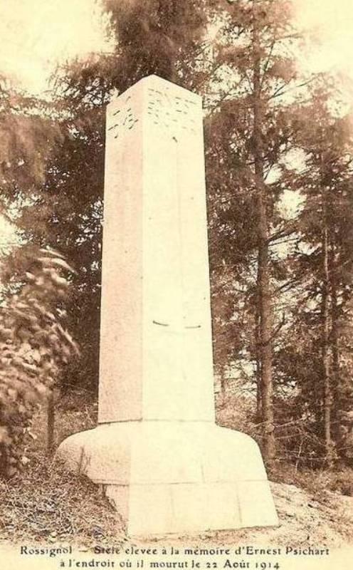 Localisation de ce monument: Rue Camille JOSET. Coordonnées GPS: +49°42'53.12", +5°29'04.85". Inscriptions figurant sur le monument Respectivemeent sur les faces gauche, centrale et droite du monument "ICI TOMBA ERNEST PSICHARI LE 22 AOÛT 1914 [Sur le socle, deux flambeaux avec les inscriptions] LE SOUVENIR FRANÇAIS [à gauche] LES TROUPES DE MARINE [à droite]" Plus d'informations concernant cette personne |
