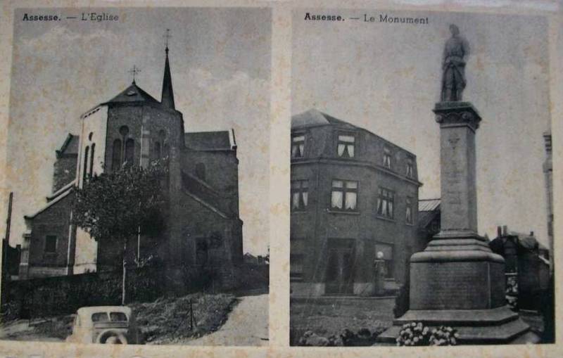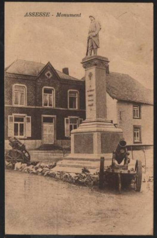 Localisation de ce monument: Place du Chanoine Dethy, le long de la Chaussée de Marche, devant l'église Saint-Martin. Coordonnées GPS: +50°22'18.86", +5°01'22.43". Inscription figurant sur le monument Face avant "À NOS HÉROS MORTS POUR LA PATRIE MORTS AUX CHAMPS D'HONNEUR [Cinq noms, avec leur régiment, lieu, date et âge de décès, classés par ordre alphabétique] LA COMMUNE RECONNAISSANTE" Face gauche "HONNEUR AUX COMBATTANTS 1914-1918 C'EST DE LA BORNE 16 QUE LES SOLDATS D'ASSESSE SONT PARTIS POUR DÉFENDRE LA PATRIE" Face droite "MORTS EN DÉPORTATION [Six noms, avec lieu, date et âge de décès, non classés par ordre alphabétique]" Face arrière "DÉPORTÉS MORTS APRÈS LA DÉPORTATION [Deux noms, non classés par ordre alphabétique]" Plaque au pied du monument "1940 - 1945 VICTIMES DE GUERRE [Cinq noms, classés par ordre alphabétique] VICTIMES CIVILES [Quatre noms, classés par ordre alphabétique]" Voir les noms mentionnés sur ce monument |