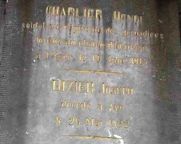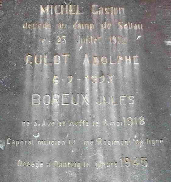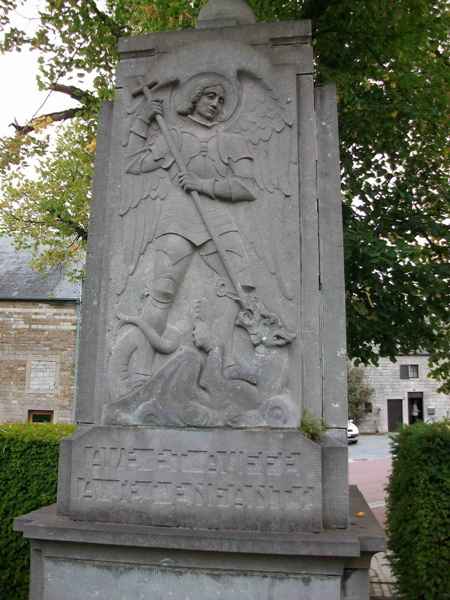 Localisation: Le long de la nationale 86, rue de Wellin, à son intersection avec la rue de Nauby. Coordonnées GPS: +50°06'30.90", +5°08'31.23". Inscriptions figurant sur le monument Face avant "AVE ET AUFFE À SES ENFANTS" Face latérale 1 "[Quatre noms, avec, dans certains cas, indication du grade, du régiment ainsi que du lieu et de la date de décès]" Face latérale 2 "[Trois noms, avec, dans certains cas, indication du grade, du régiment ainsi que du lieu et de la date de décès]" Voir les noms gravés sur ce monument |