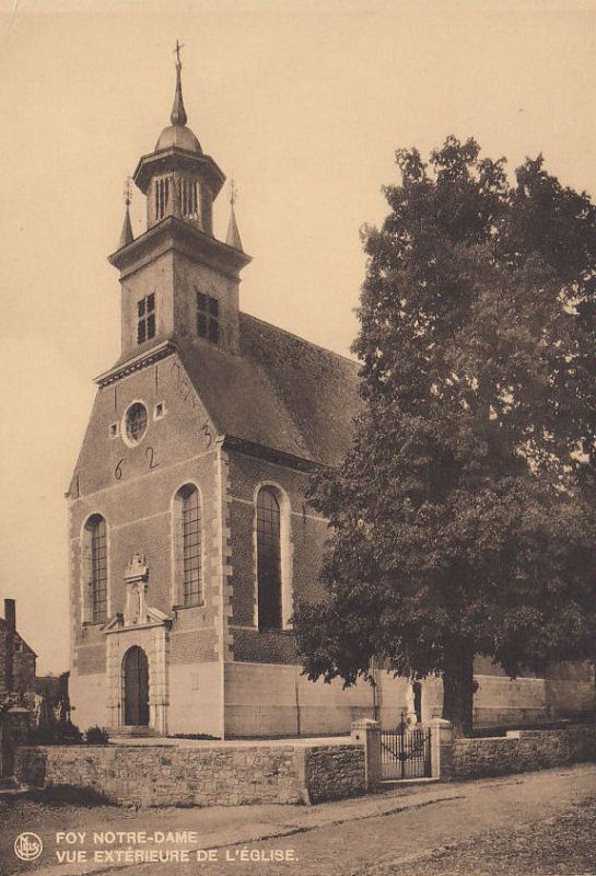 Localisation: Rue des Claviats, sur la façade de l'église Notre-Dame de Foy. Coordonnées GPS: +50°14'52.50", +4°59'23.70" Inscriptions Plaque à gauche de l'entrée de l'église "1940 - 1945 EN TÉMOIGNAGE DE SOUVENIR ET DE GRATITUDE AU REGRETTÉ JOSEPH HEBETTE SOLDAT DU 44E DE LIGNE DÉCÉDÉ EN CAPTIVITÉ À NIEMBURG À L'ÂGE DE 36 ANS PRIEZ DIEU POUR LUI" Plaque à droite de l'entrée de l'église "1914 - 1918 EN TÉMOIGNAGE DE SOUVENIR ET DE GRATITUDE AU REGRETTÉ MAURICE DESSY PIEUSEMENT DÉCÉ DÉ À FOY-NOTRE_ DAME VICTIME DE LA DÉPORTATION LE 2 NOVEMBRE 1918 PRIEZ DIEU POUR LUI" Plus d'informations concernant ces deux victimes |