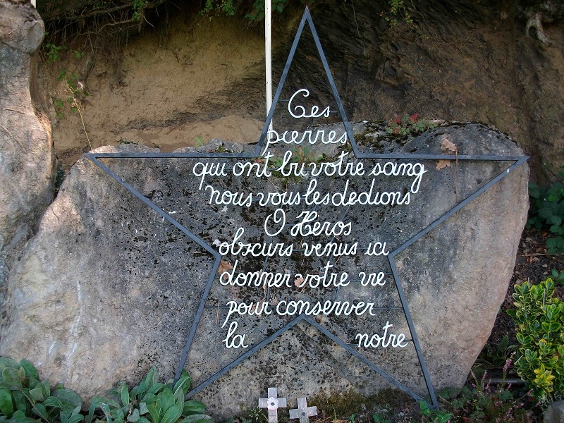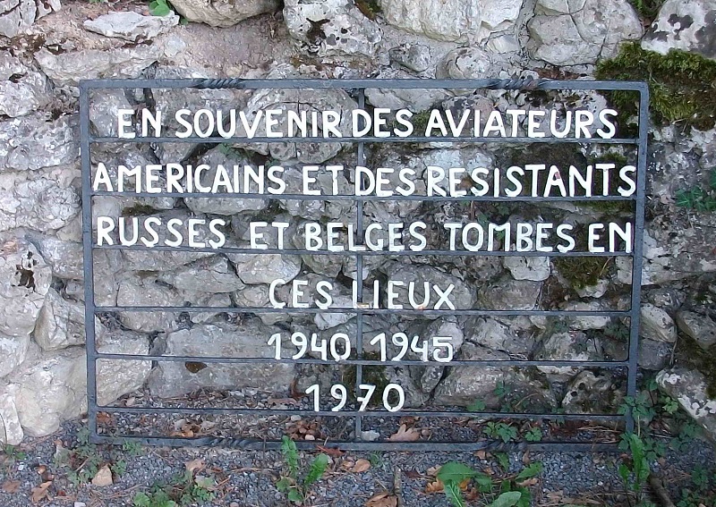 Localisation de ce monument: Rue de la Fontaine Saint-Martin (le long de la "Chavée"). Coordonnées GPS: +50°07'44.02", +5° 12'35.73". Inscriptions figurant sur le monument "EN SOUVENIR DES AVIATEURS AMÉRICAINS ET DES RÉSISTANTS RUSSES ET BELGES TOMBÉS EN CES LIEUX 1940 - 1945 1970" "CES PIERRES QUI ONT BU VOTRE SANG NOUS VOUS LES DÉDIONS Ô HÉROS OBSCURS VENUS ICI DONNER VOTRE VIE POUR CONSERVER LA NÔTRE" Ce monument ne comporte pas de noms |