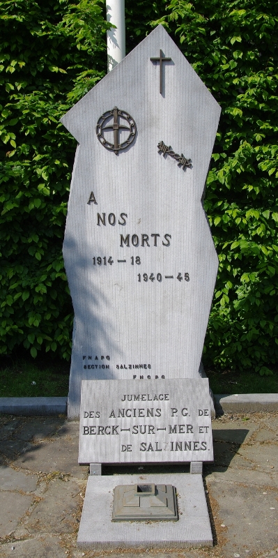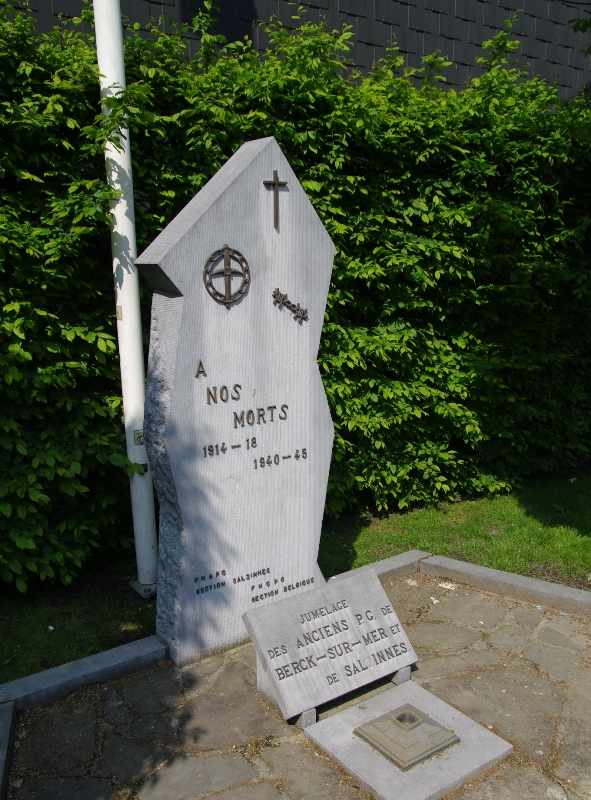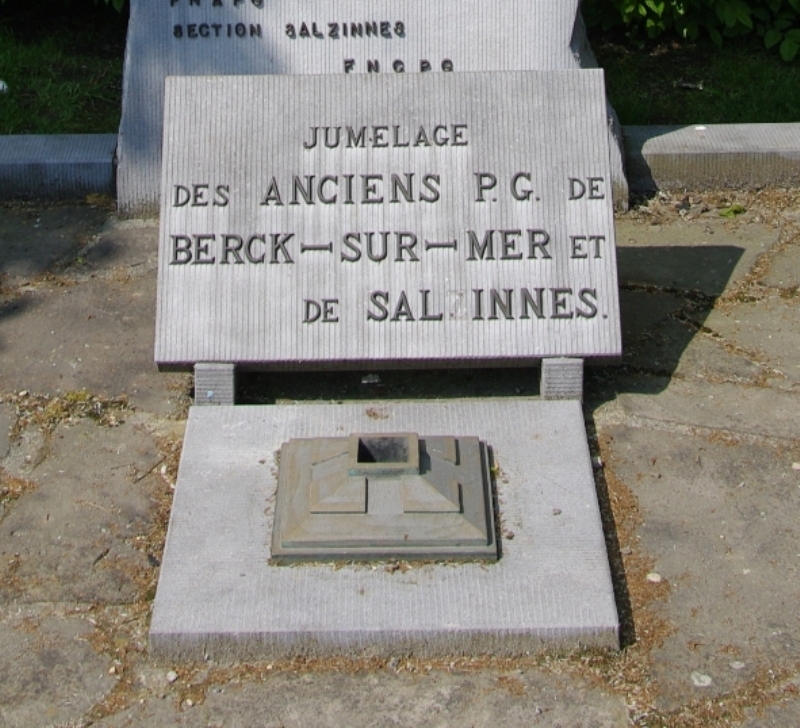 Localisation: Au carrefour des Rues du Belvédère et Patenier et de la Chaussée de Charleroi (Place du 8 mai) en face de l'église Sainte-Julienne. Coordonnées GPS: +50°27'46.99", +4°50'41.71" Inscriptions "À NOS MORTS 1914-18 1940-45 FNAPG SECTION SALZINNES FNGPG SECTION BELGIQUE" Sur la plaque au pied du monument "JUMELAGE DES ANCIENS P.G. DE BERCK-SUR-MER ET DE SALZINNES" Ce monument ne comporte pas de noms |