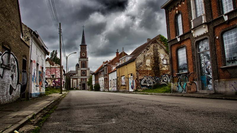 Temidden van alle verlaten huizen, in perfecte staat… de kerk en het