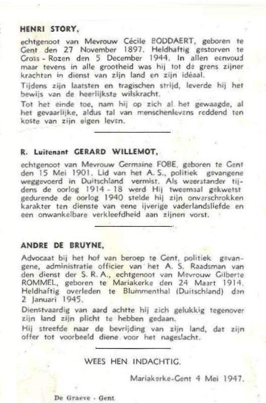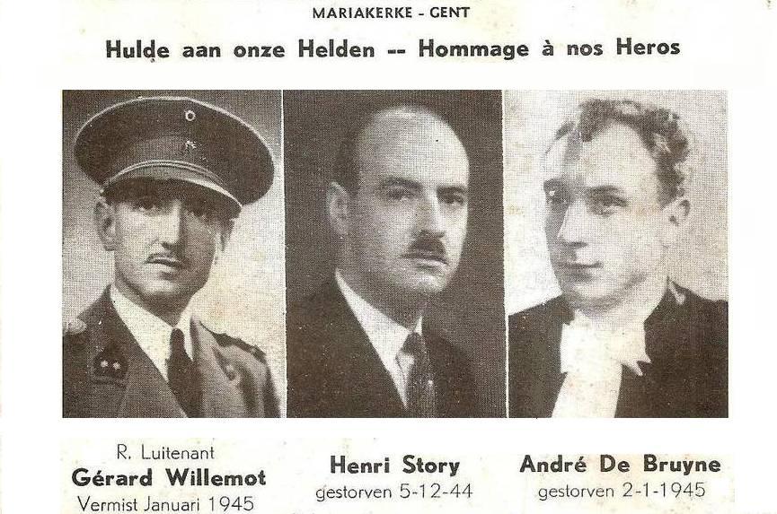 Situering: Private collectie. Opschriften op het document Eerste zijde "MARIAKERKE - GENT HULDE AAN ONZE HELDEN -- HOMMAGE À NOS HÉROS Drie namen, met overlijdensdatum en foto's]" Ommezijde Zie scan onderaan Zie namen vermeld in het document |