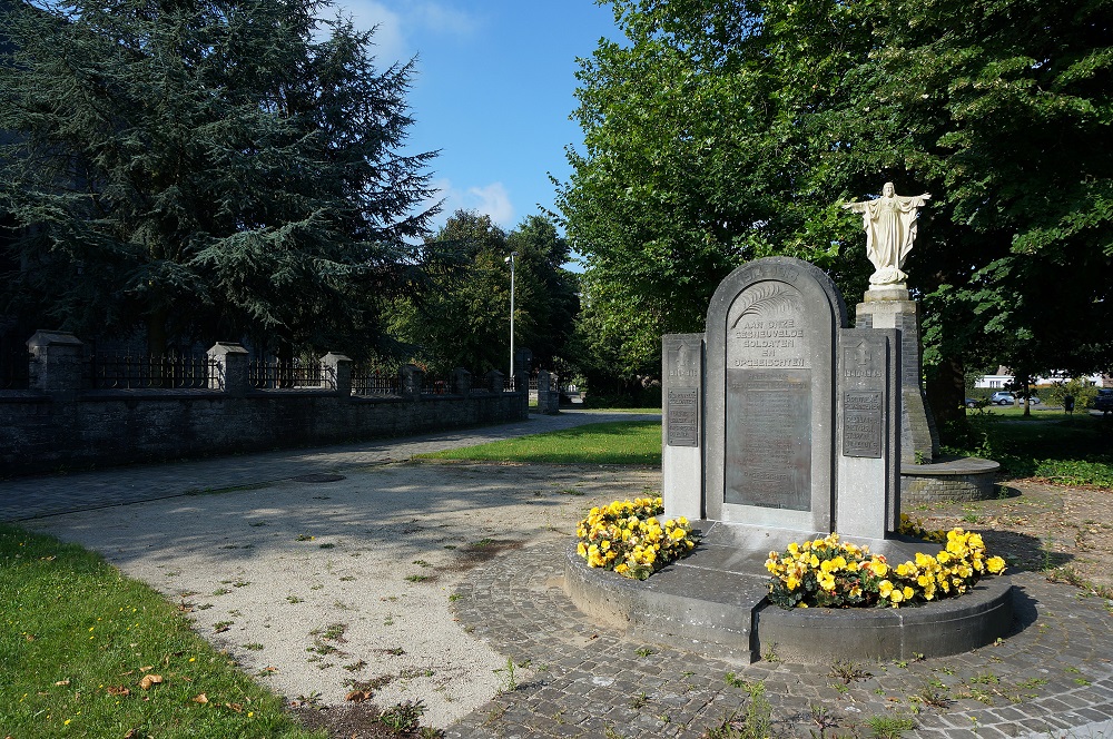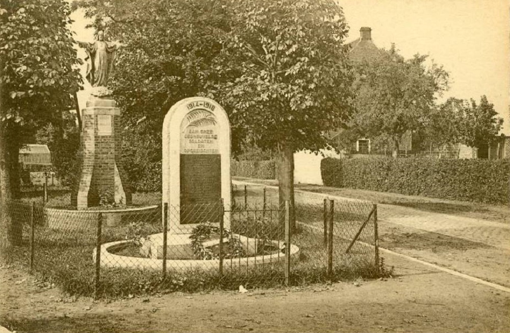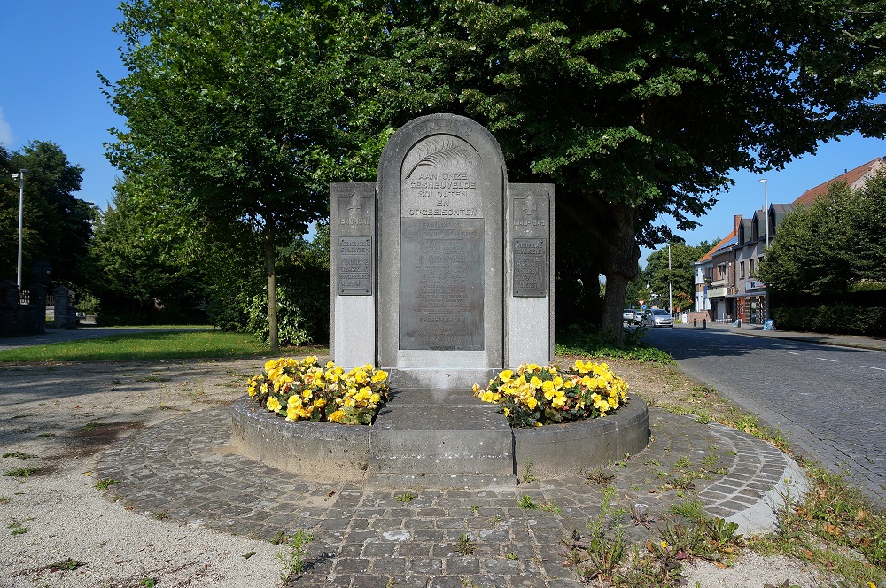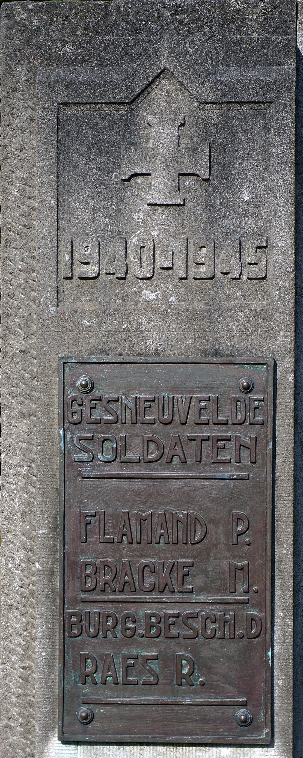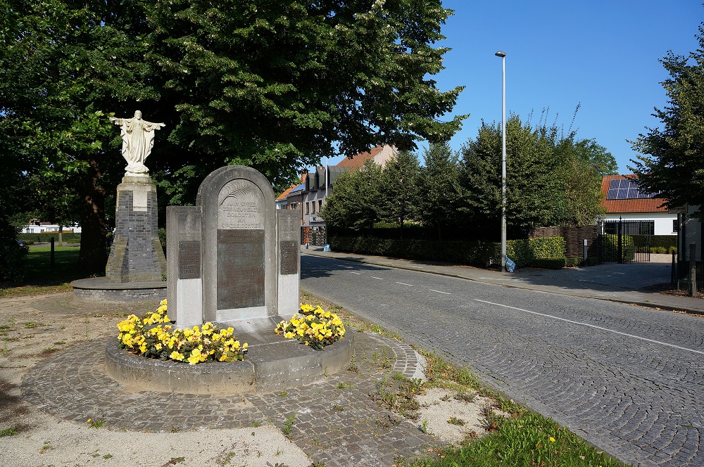 Ligging: Mariakerkeplein, voor de kerk. GPS-coördinaten: +51°04'22.1", +3°40'32.4" Opschriften Middenplaat "1914-1918 AAN ONZE GESNEUVELDE SOLDATEN EN OPGEËISCHTEN MARIAKERKE GESNEUVELDE SOLDATEN [Vijftien namen, alfabetisch gerangschikt] OPGEËISCHTEN [Vijf namen, alfabetisch gerangschikt, met één uitzondering]" Linkerplaat "1940-1945 GESNEUVELDE SOLDATEN [Twee namen, niet alfabetisch gerangschikt] BURG. BESCH. D. [Één naam]" Rechterplaat "POLITIEKE GEVANGENEN [Vier namen, alfabetisch gerangschikt]" Uitvoering: Bronsg. VINDEVOGEL, Swijnaerde, Gent (gesigneerd). Zie namen op het gedenksteen |
