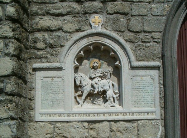 Situering: Westgevel van de kerk. Opschrift "[Vierendertignamen] ST MARTINUS ONZE PATROON EN BESCHERMER BID VOOR ONS" Geschiedenis Velzeke-Ruddershove vierde de terugkeer van de soldaten op 31 augustus 1919; de gemeente droeg bij in de organisatiekosten. Kort daarop rijst de idee om voor de gesneuvelden een gedenksteen op te richten. Zo lezen we in "De Beiaard" begin oktober 1919: "Velsicque telt 20 gesneuvelde soldaten en 4 burgerlijke slachtoffers. Ter hunner eere zal eerlang een prachtvol gedenkteeken worden opgericht". Meteen doet men ook een oproep aan de bevolking om dit project mee te helpen financieren. De onthulling van het monument waar "in goudvlammende letteren de namen onzer vijf en twintig dooden staan te lezen" vindt plaats op 25 april 1920. Het monument, een bas-reliëf in de westgevel van de kerk ingewerkt, valt onmiddellijk in de smaak: "Het gedenkteeken is allerprachtigst; een echt kunstvoorwerp, dat den heer beeldhouwer C. Van de Capelle, van Anderlecht, ter eere strekt". Op het zandstenenbas-reliëf, met centraal een H. Martinus, vinden we de namen terug van de gesneuvelden en de burgerlijke slachtoffers. De informatie strookt lang niet altijd met wat we in de overlijdensregisters terugvonden en er moet nog in 1920 heel wat onduidelijkheid zijn geweest over de precieze plaats en datum van overlijden. Zo wordt een paar keer vermeld: "verdwenen Dixmuide" of kortweg "verdwenen". Tot 1979 hing achterin in de kerk ook een ingelijste assemblage met alle doodsprentjes van de gesneuvelden en gevallenen. Tijdens een plaatsbezoek op 1 augustus 1995 vonden we, ondanks een grondig speuren in alle hoeken en kanten van de kerk, dit kader niet terug. Een monument voor de slachtoffers van de Tweede Wereldoorlog werd hier niet teruggevonden. Na WO II werd overwogen om een gedenkteken op te richten onder de treurwilg op het "nieuw" kerkhof, maar het bleef bij plannen (Bron [12]). Zie namen gebeiteld op het monument |