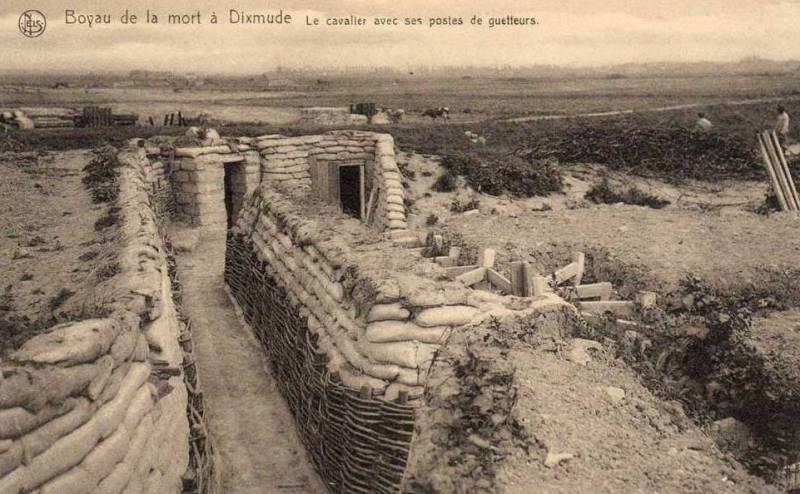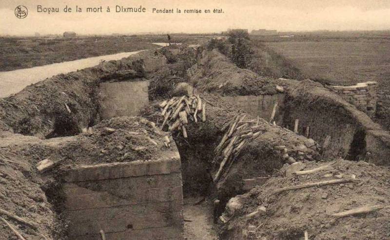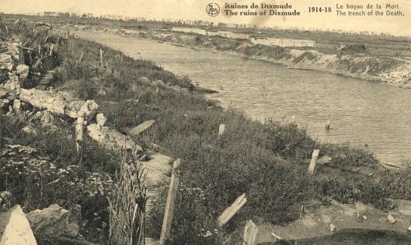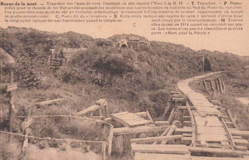 Situering - Localisation: Dodengang, IJzerdijk. Boyau de la Mort, IJzerdijk. Coordonnées GPS - GPS-coördinaten: +51°2'45.27", +2°50'35.26" Opschriften - Inscriptions "DODENGANG HIER HEEFT ONS LEGER DE INVALLER IN BEDWANG GEHOUDEN 1914 - 1918 BOYAU DE LA MORT ICI NOTRE ARMÉE A TENU L'ENVAHISSEUR EN ÉCHEC" "CE MONUMENT A ÉTÉ OFFERT PAR BAUGNIET MARCEL - MARCINELLE -" Er staan geen namen van geseneuvelden gebeiteld op deze monument |