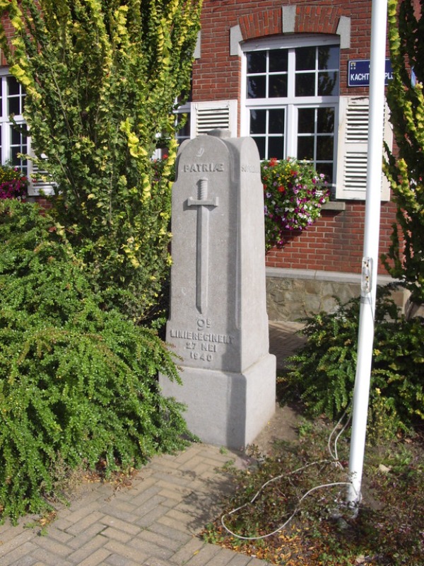 Situering van het monument: Kachtemseplein. GPS-coördinaten: +50°55'55.95", +3°11'34.32". Opschriften op het monument "[Doorlopende tekst op de zuil ] SALUS / PATRIÆ / SUPREMA / LEX [Op de voorkant in reliëf] 9E LINIEREGIMENT 27 MEI 1940 " Beschrijving Op een vierkante sokkel staat een naar boven toe versmallende zuil met gegroefde hoeken en zijden die bovenaan rondboogvormig eindigen.Op de top staat een soort kegel. Volledig uitgevoerd in hardsteen (Bron [46]). Er staan geen namen gebeiteld op deze gedenkzuil |