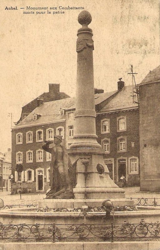 Localisation de ce monument: Sur la place à l'angle des Rues de Gorhez et de la Station. Coordonnées GPS: +50°42'14.43", +5°51'33.71". Inscription figurant sur le monument "AUBEL À SES HÉROS MORTS POUR LA PATRIE [Onze noms, sur deux colonnes, classés par ordre alphabétique] SURVIVANTS [Soixante noms, plus un certain nombre illisibles, sur quatre colonnes, classés par ordre alphabétique, sauf deux] 1914 - 1918" Informations complémentaires sur le monument: Sclupteur: Fern. HEUZE en 1921 à Verviers Fondu par LEMPEREUR Frères en 1921 à Liège Voir les noms mentionnés sur ce monument |