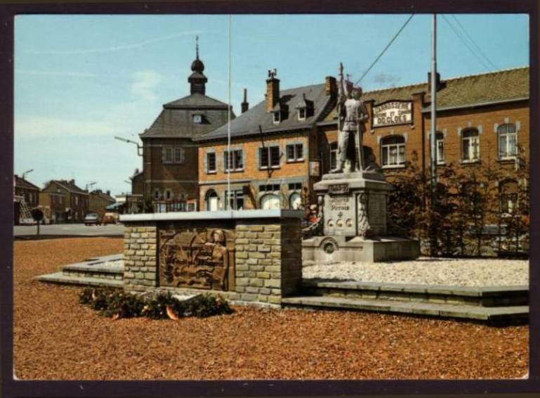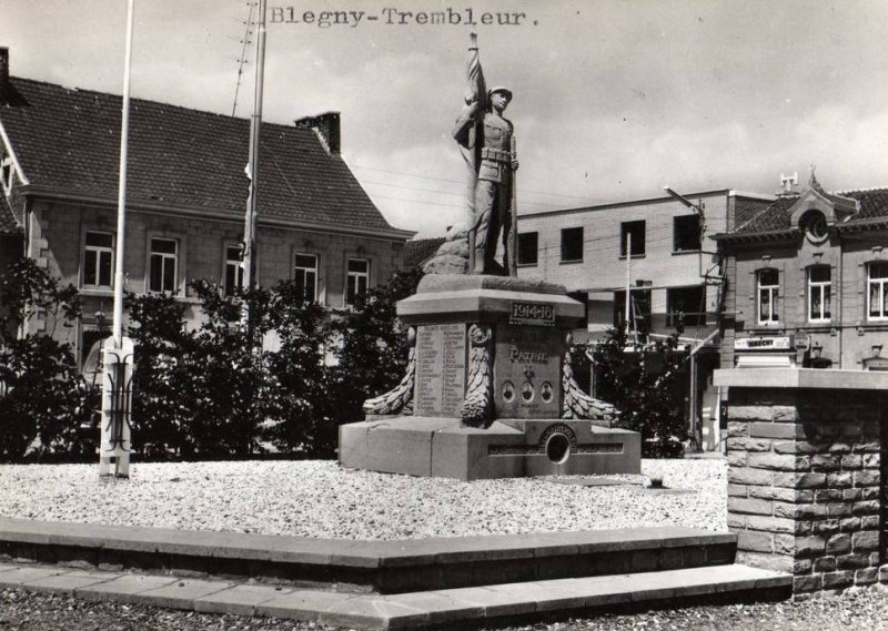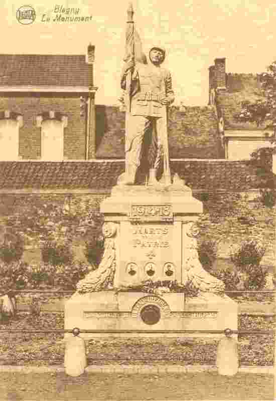 Localisation de ce monument: Place Sainte-Gertrude. Coordonnées GPS: +50°40'19.60", +5°43'29.06". Inscription figurant sur le monument Sur le muret devant le monument "C'EST AU FOND DE CETTE HORREUR QU'IL A COMMENCÉ À SOURIRE IL N'AVAIT PAS UN CAMARADE MAIS DES MILLIONS ET DES MILLIONS" Face avant du monument "1914 - 18 MORTS POUR LA PATRIE [Trois noms, avec photo, classés par ordre alphabétique] LA COMMUNE DE BLEGNY-TREMBLEUR À SES HÉROS" Sur la pierre au pied du monument "SOUS CETTE DALLE A ÉTÉ DÉPOSÉE DE LA TERRE DE L'YSER DE LA LYS DE BASTOGNE DE FORET ET D' UN CAMP DE PRISONNIERS 13 MAI 1951" Face gauche "SOLDATS MOBILISÉS [Trente-cinq noms, sur deux colonnes, classés par ordre alphabétique, sauf le dernier]" Face droite "VOLONTAIRES DE GUERRE [Treize noms, sur deux colonnes, classés par ordre alphabétique] GENDARMERIE NATIONALE [Quatre noms, sur deux colonnes, classés par ordre alphabétique]" Face arrière "[Une photo où l'on voit quatre civils qui vont être fusillés]" Sur la dalle à gauche du monument "BLEGNY-TREMBLEUR CITE, À L'ORDRE DU JOUR, SES ENFANTS : TOMBÉS AU CHAMP D'HONNEUR, DISPARUS, VICTIMES CIVILES, COMBATTANTS DES 18 JOURS, PRISONNIERS DE GUERRE ET POLITIQUES, RÉSISTANTS ARMÉS, DE LA PRESSE CLANDESTINE, AGENTS DE RENSEIGNEMENT ET D'ACTION OU ISOLÉS, COMBATTANTS DE LA BRIGADE PIRON, VOLONTAIRES DE GUERRE, ADOLESCENTS AYANT RÉPONDU À L'ORDRE DE MOBILISATION, RÉFRACTAIRES AU TRAVAIL POUR L'OCCUPANT ET DÉPORTÉS PENDANT LA GUERRE 1940 - 1945" Sur la dalle dressée à droite du monument "CIVILS FUSILLÉS DU 4 AU 15 AOÛT 1914 [Seize noms, sur deux colonnes, classés par ordre alphabétique sauf trois]" Plus d'informations concernant les évènements d'août 1914: Blegny - Août 1914 et Wereldbeeld - Blegny Voir les noms mentionnés sur ce monument |