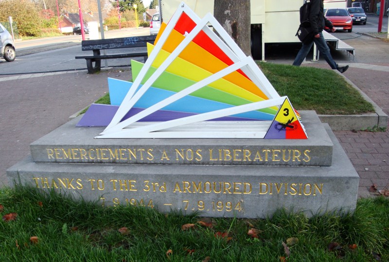 Localisation de ce monument: Au rond-point de la Rue de Magnée, de la Rue de la Ligne 38 et de l'Avenue des Martyrs. Coordonnées GPS: +50°36'52.98", +5°40'58.82". Inscription figurant sur le monument "REMERCIEMENTS À NOS LIBÉRATEURS THANKS TO THE 3RD ARMOURED DIVISION 7.9.1944 - 7.9.1994" Remarque: Comme on peut le voir sur les photos prises en 2009, le monument se trouvait à côté des stèles situées dans le parc communal, dont l'entrée se trouve Rue François Lapierre. Ce monument ne comporte pas de noms |