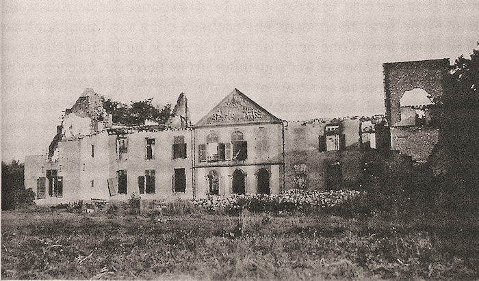 dans le fonds, l'étable où seront retrouvés une partie des cadavres.