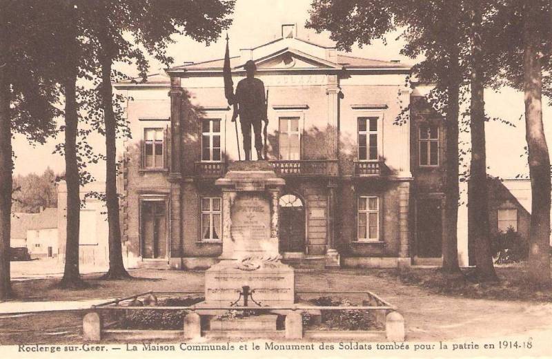Localisation de ce monument: Place de l'Union, devant la maison communale. Coordonnées GPS: +50°45'19.82", +5°35'43.85" Inscriptions figurant sur le monument Face avant "1914-1918 MORTS POUR LA PATRIE + SOLDATS [Dix noms, sur deux colonnes, classés par ordre alphabétique] CIVIL ASSASSINÉ [Un nom] AVOCAT-DÉPUTÉ PERMANENT LA COMMUNE DE ROCLENGE SUR GEER [Six noms, sur deux colonnes, classés par ordre alphabétique] 1940-1945" Face droite "ANCIENS COMBATTANTS OFFICIERS [Deux noms, sur deux colonnes, classés par ordre alphabétique] SOUS-OFFICIERS ET SOLDATS [Vingt-quatre noms, sur deux colonnes, classés par ordre alphabétique] 1940-1945 [Vingt-six noms, sur trois colonnes, classés par ordre alphabétique]" Face arrière "[Vingt-six noms, sur deux colonnes, classés par ordre alphabétique sauf deux] [Trente-six noms, sur quatre colonnes, classés par ordre alphabétique sauf cinq]" Face gauche "ANCIENS COMBATTANTS [Vingt-sept noms, sur deux colonnes, classés par ordre alphabétique sauf deux] [Vingt-sept noms, sur trois colonnes, classés par ordre alphabétique sauf un]" Informations complémentaires: La statue est identique à celle du monument d’Ocquier, signée B. VAN Uytvanck fils et fondue chez DEHIN à Liège (Source [276]) Voir les noms mentionnés sur ce monument |