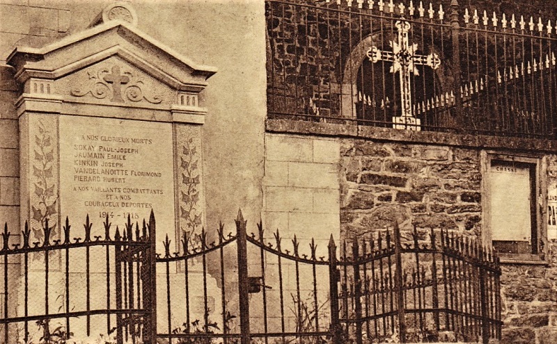 Localisation: À l'angle de la Rue de la Vallée et de la Rue de Mormont. Coordonnées GPS: +50°06'44.73", +5°18'42.65" Inscriptions "À NOS HÉROS DES DEUX GUERRES 1914-1918 [Cinq noms, non classés par ordre alphabétique] 1940-1945 [Neuf noms, non classés par ordre alphabétique]" Voir les noms mentionnés sur le monument |