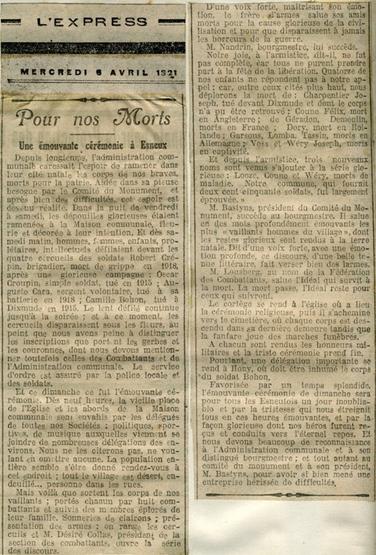 victimes esneutoises de l'Yser