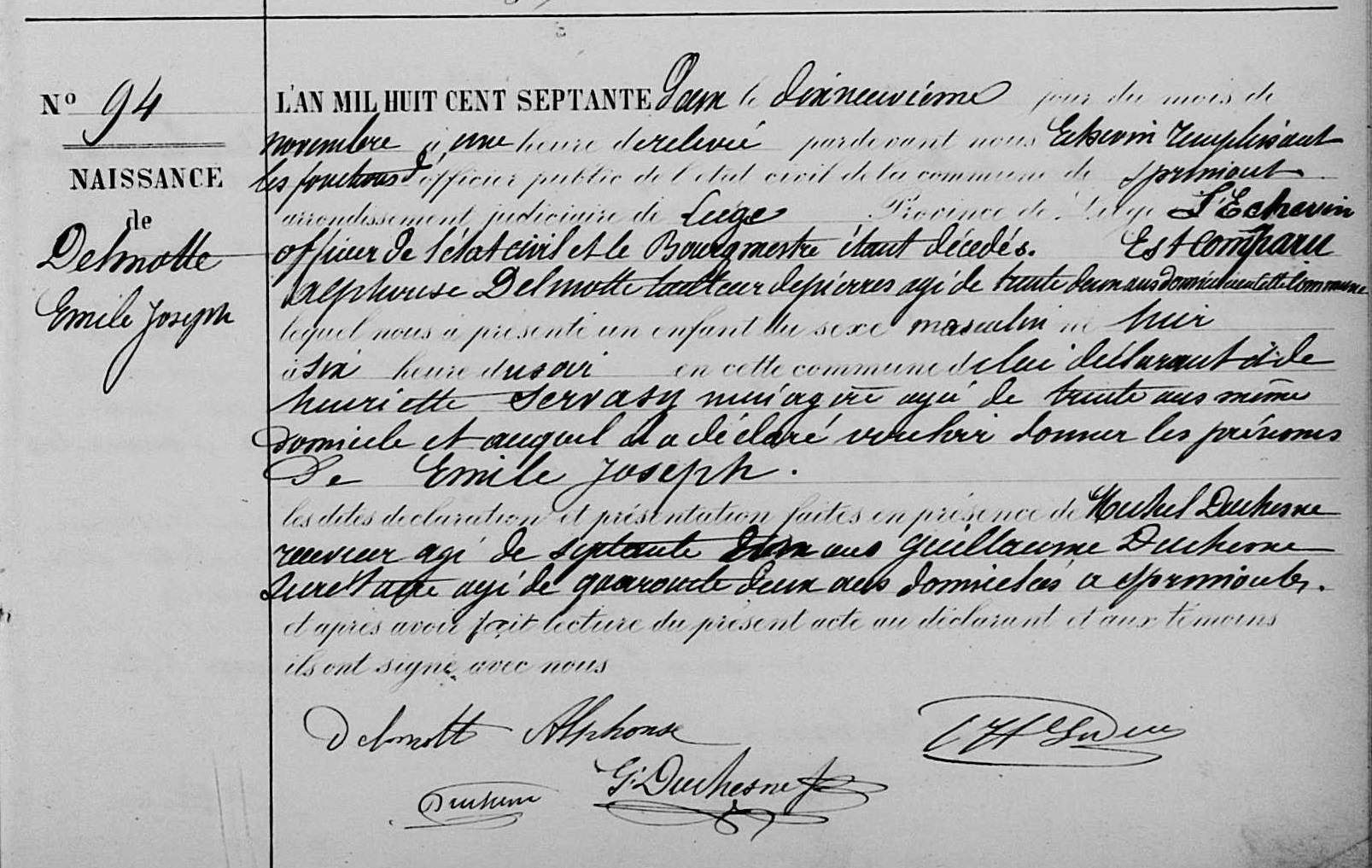 Acte de naissance à Sprimont, LG, BE (Source [358])