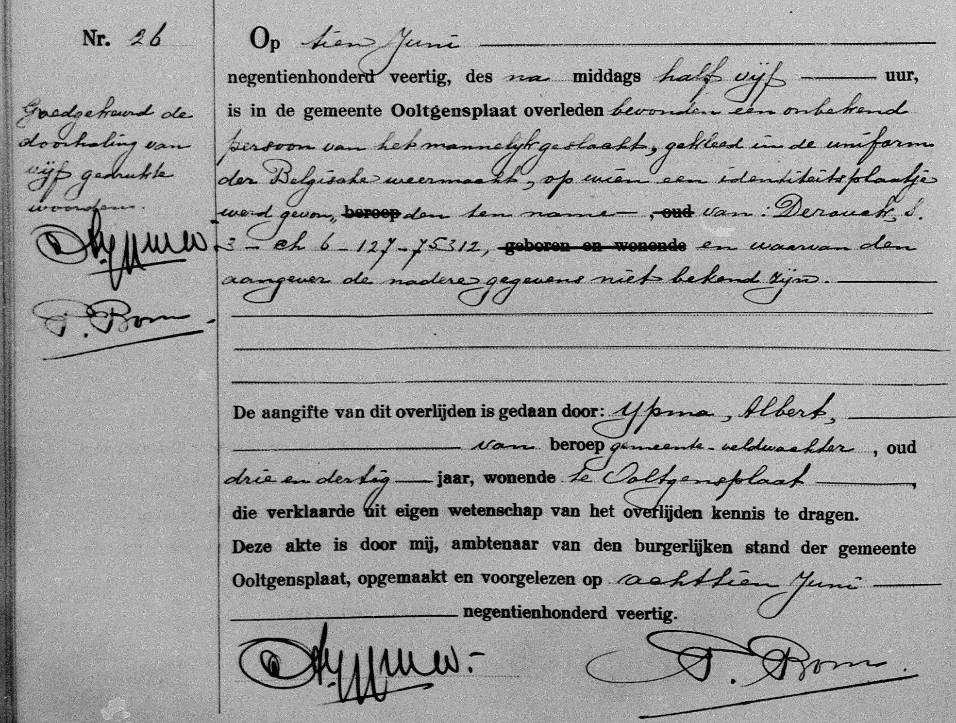 Acte de décès à Ooltgensplaat, NL (Source [358])
