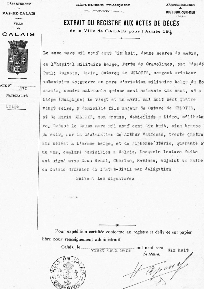 Acte de décès à Calais, Pas-de-Calais, FR (Source [167])