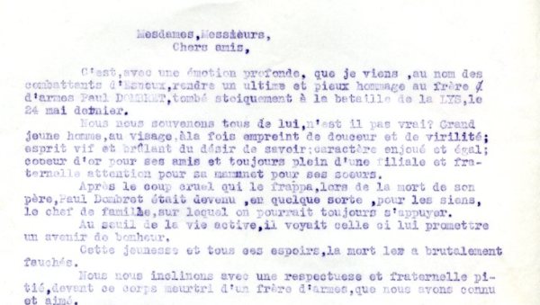 Éloge funèbre prononcé lors de l'inhumation de Paul DOMBRET au