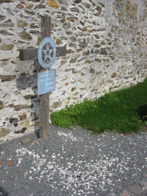 Description de la tombe: Sous une croix de chêne est attachée une